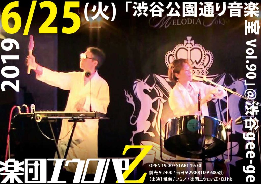 渋谷公園通り音楽室 Vol.90 楽団エウロパZ 会場 渋谷gee-ge 開場/開演 19:00/19:30 前売/当日2400円/2900円(1D別) 出演桃南 / フミノ / 楽団エウロパZ / DJ hb